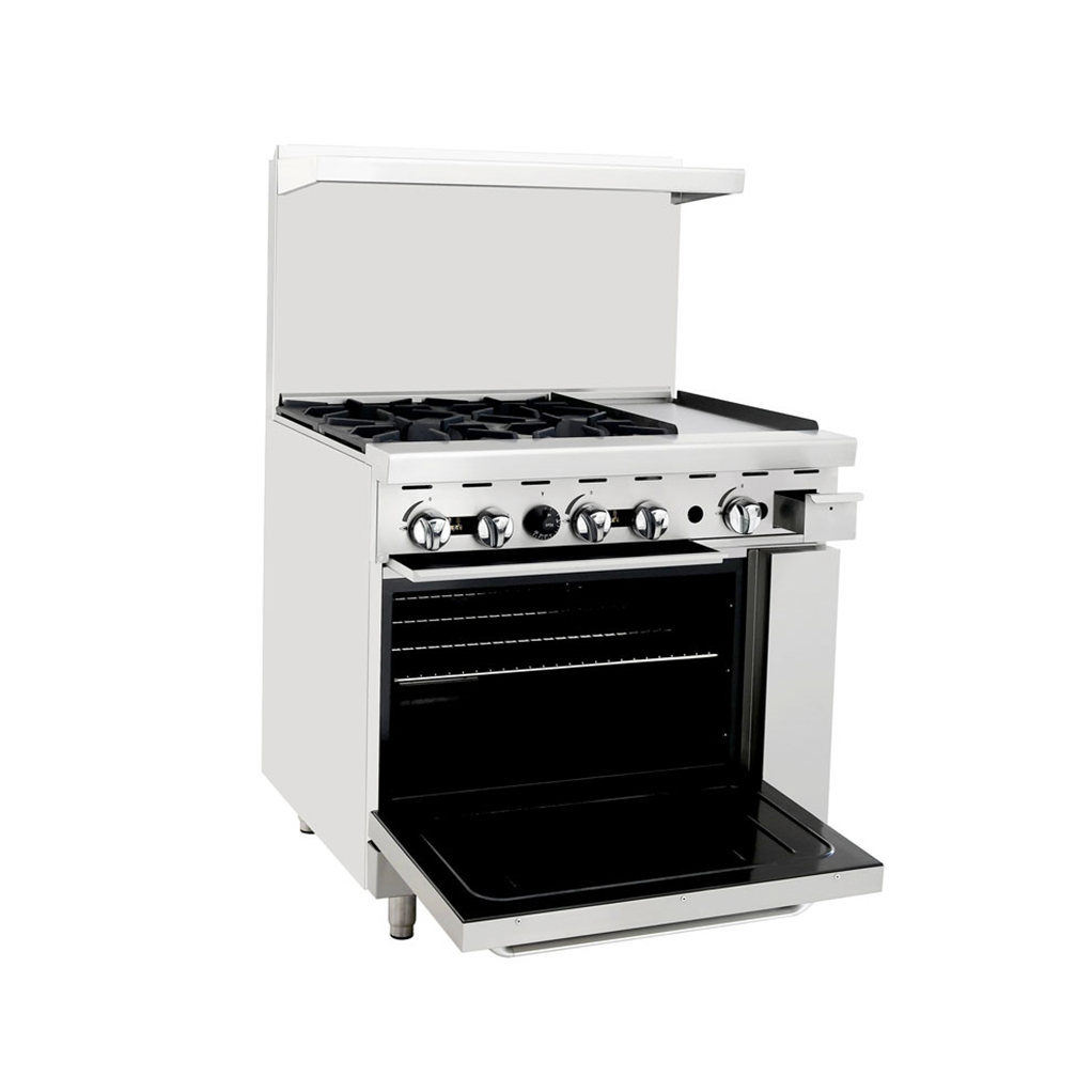 36″ Gas Range with Four (4) Open Burners & 12″ Griddle