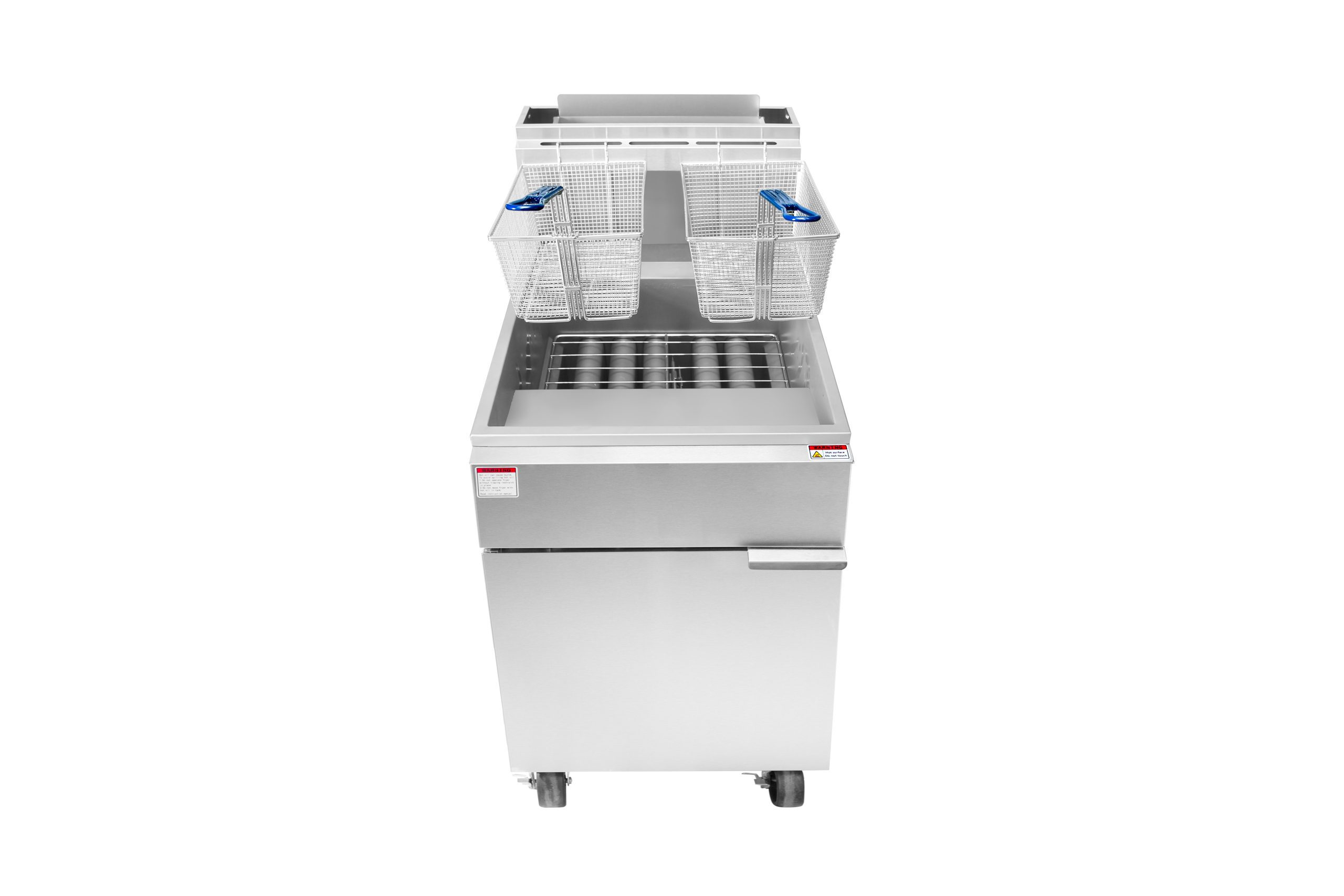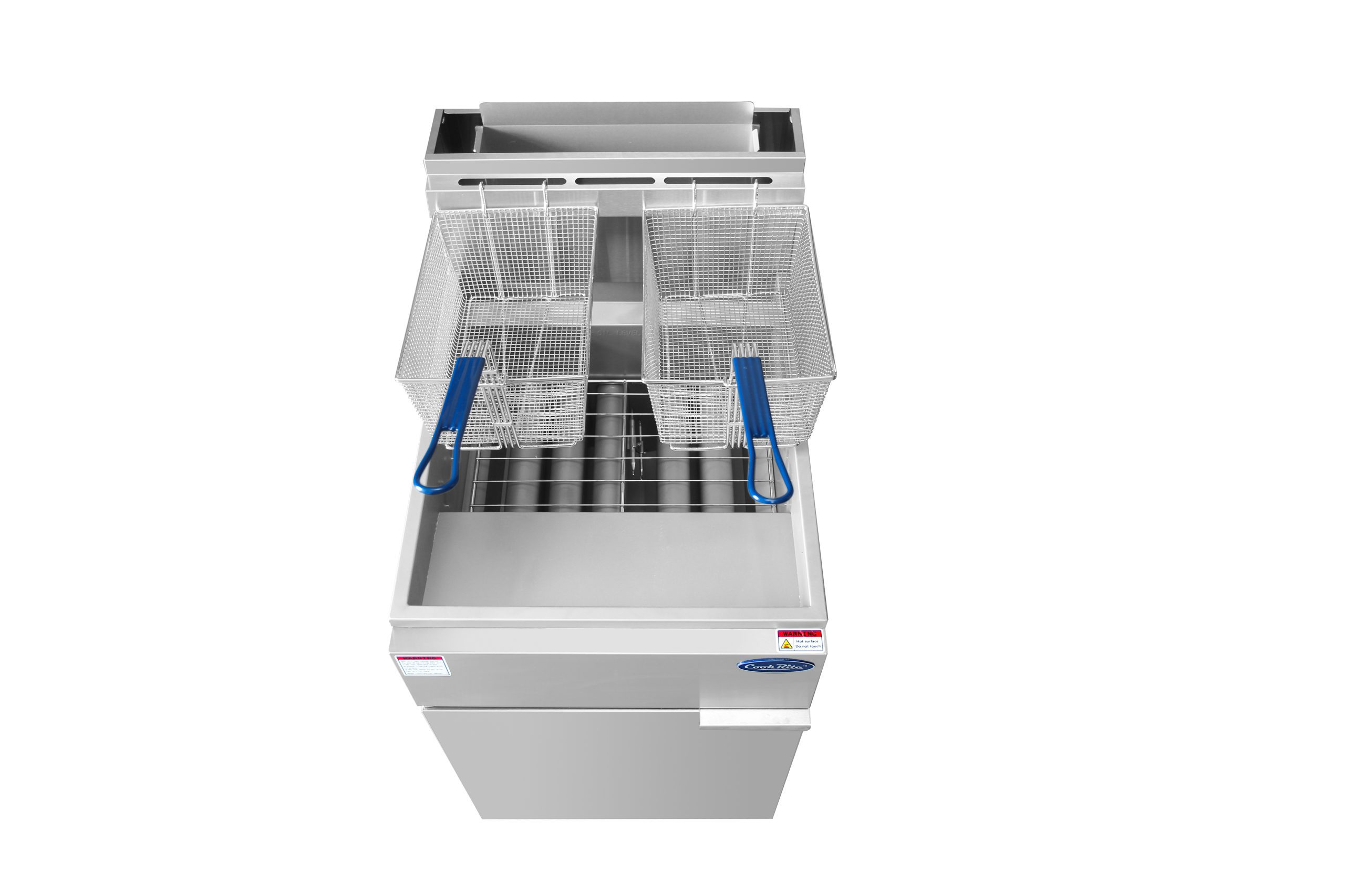 Oil cooling zone in the bottom of the tank captures food particles and extends oil life